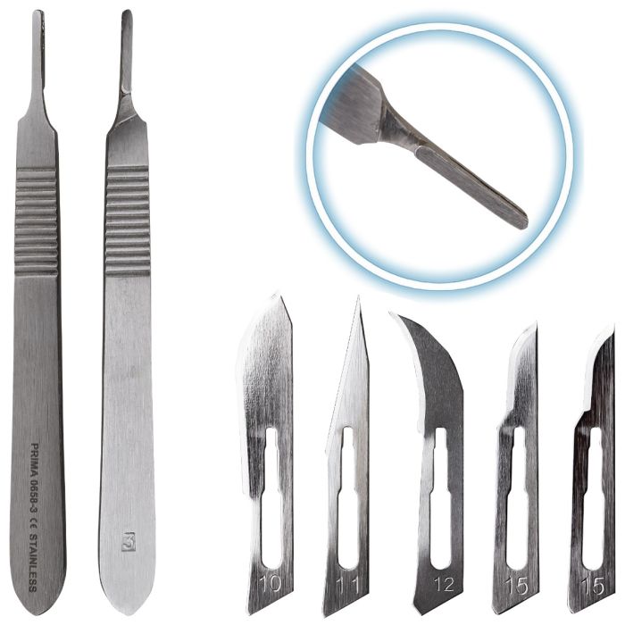 Lamele de bisturiu PRIMA sunt fabricate dintr-un aliaj cu un continut ridicat de carbon, care ofera o muchie taietoare extrem de ascutita si rezistenta. Aceste lame sunt sterile, de unica folosinta si ambalate individual in folie de aluminiu, mentinandu-si astfel calitatea si siguranta. Sunt utilizate in chirurgie, disectie anatomica si diverse interventii medicale.
