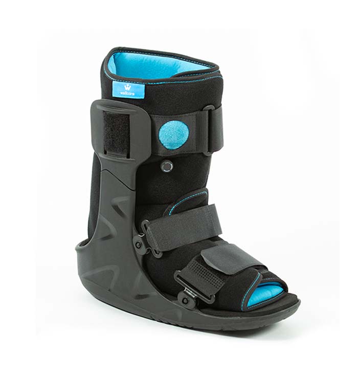 Caracteristici: Orteza pentru imobilizarea gleznei SUPER AIR WALKER ofera imobilizare sigura si eficienta, sistem de inchidere cu 4 curele, asigura stabilitate maxima, pompa de aer si supapa de ventilatie pentru o manipulare usoara, reglare sau indepartare protector depntru degetele de a picior, talpa lata si rotunjita pentru un mers natural si stabil.