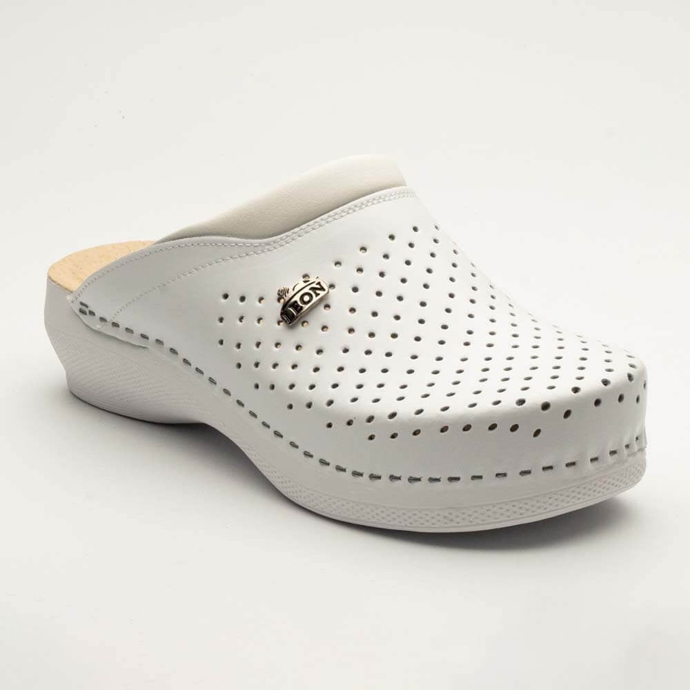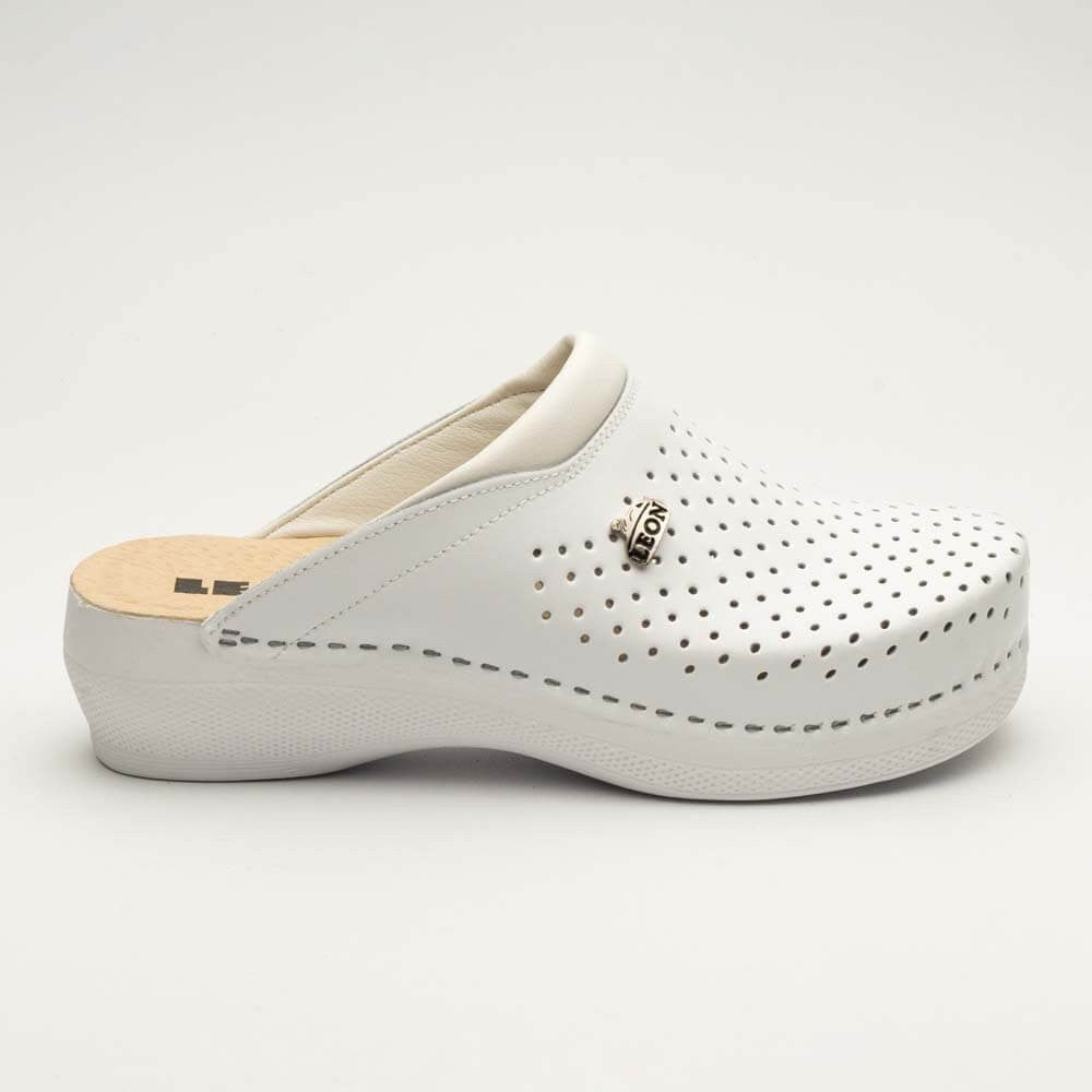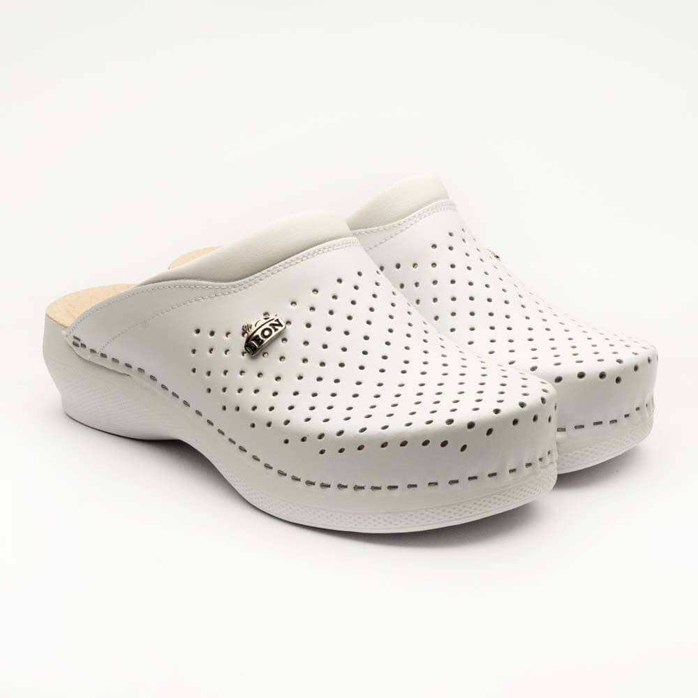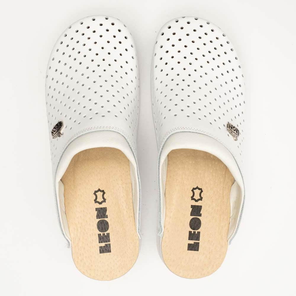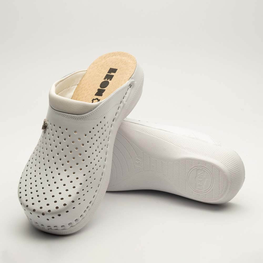 Descriere produs: Saboti medicali, unisex, din piele, alb, Leon New